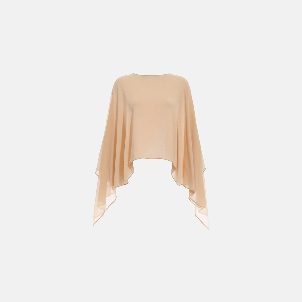 Sobreposição de chiffon com mangas longas. Padrão vazado em preto. Sem fecho, estilo solto.